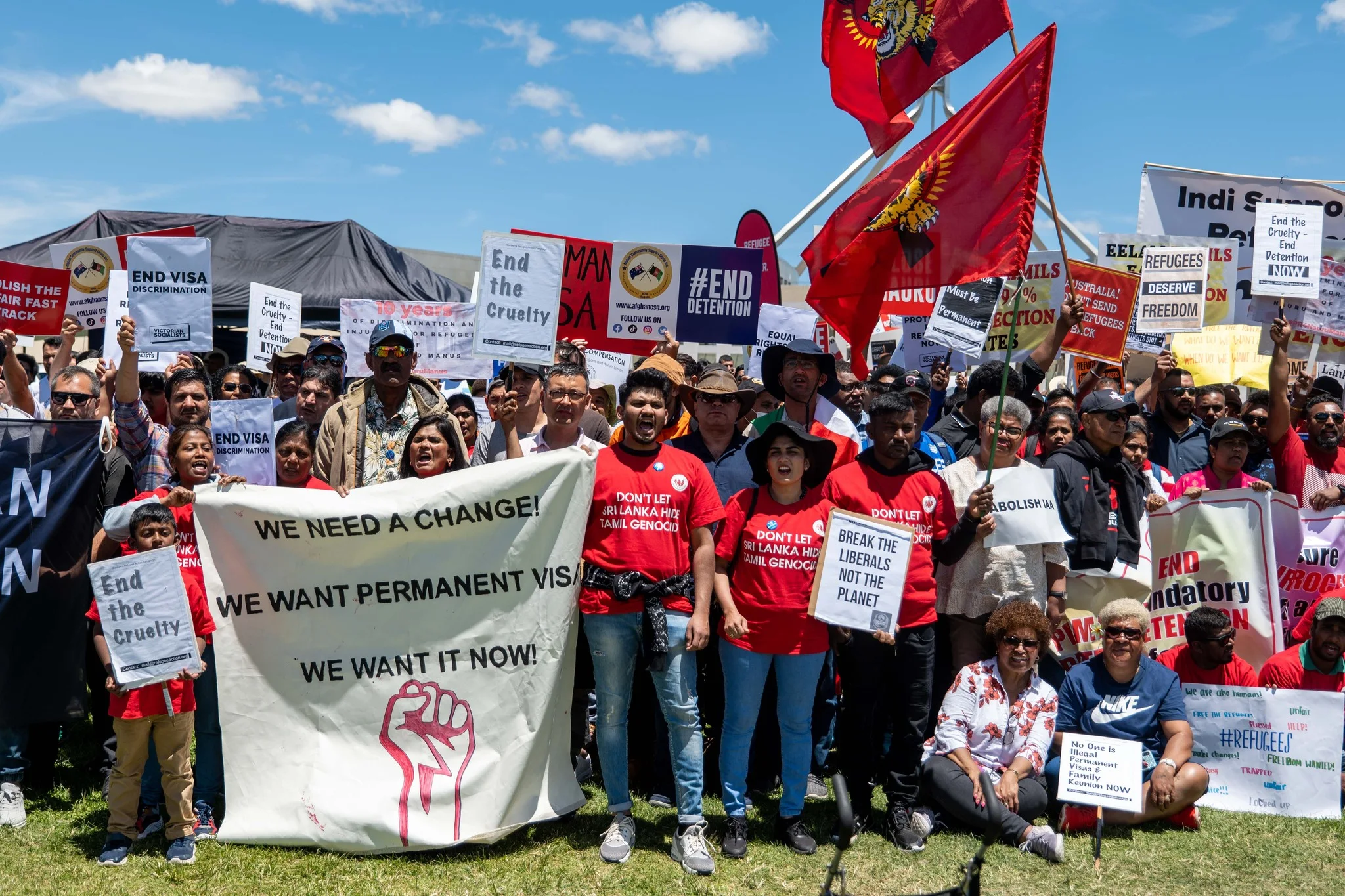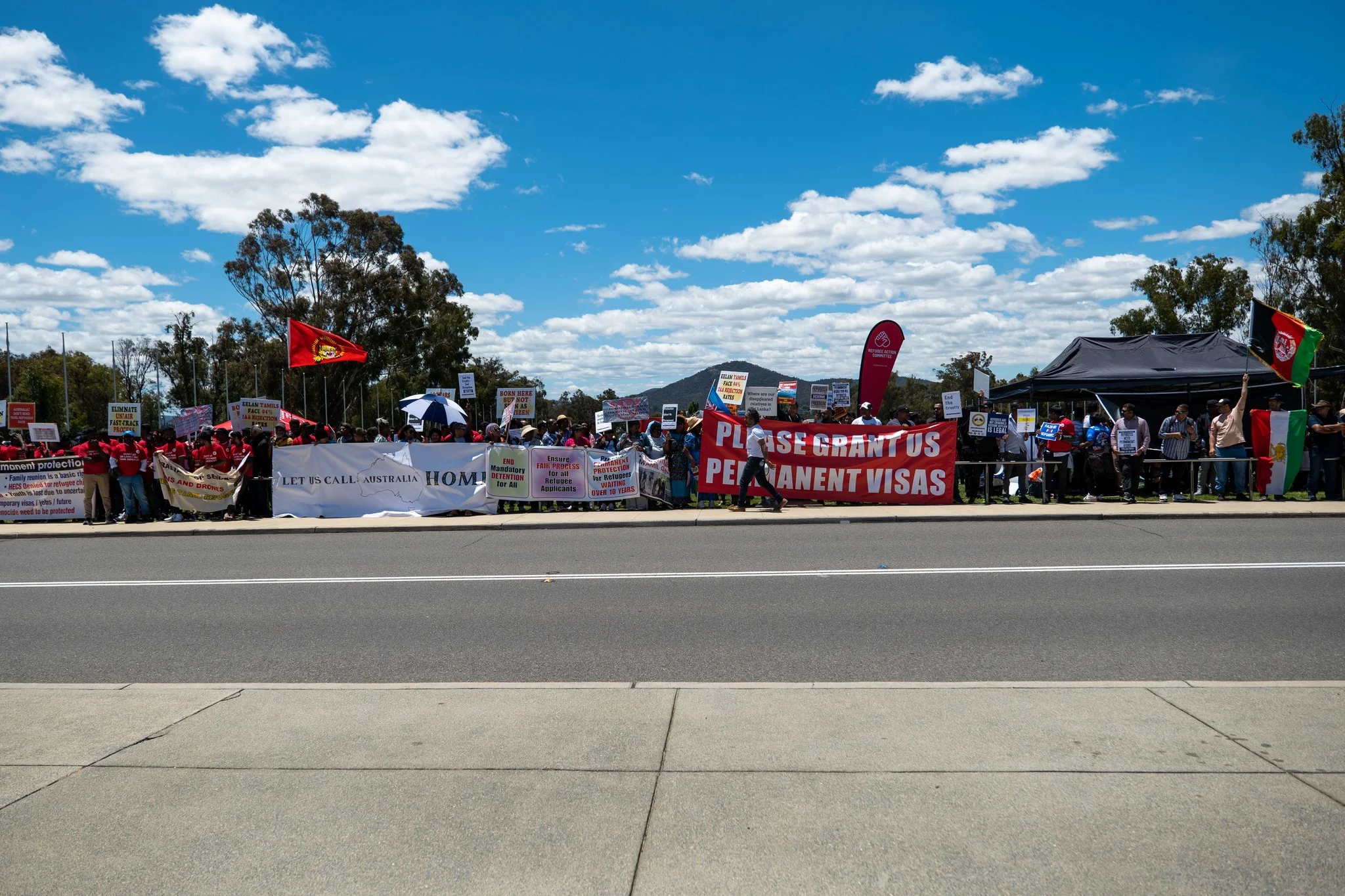 பத்து வருடங்களுக்கு மேலாக நிரந்தர விசா இன்றி வாழும் தமிழ் அகதிகளுக்கு உடனடியாக நிரந்தர விசா வழங்குமாறு கோரி நடைபெற்ற இப்பேரணியில் சிட்னி மற்றும் மெல்பேர்ண் பெருநகரங்களிலிருந்து பேரூந்துகளில் வந்து பெருமளவு மக்கள் கலந்துகொண்டிருந்தனர். அத்தோடு ஏனைய மாநிலங்களில் இருந்தும் நேரடியாக பலர் வருகைதந்திருந்தனர்.